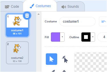The next set of things that came to me weren't as obvious - they weren't on the front page of the information about each sprite. But it didn't take me much thinking to remember that each sprite also knows:- Costumes - as a list of named images