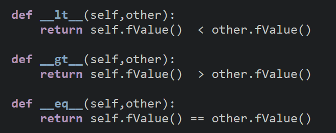 - Modify the __lt__, __gt__, __eq__ magic method to use the fValue() functionwhen sorting the PriorityQueue