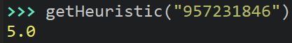 Create a function called getHeuristic() that takes in a Twiddle board (a length 9 string) and returns a heurstic value of the board based on the modified Manhattan Distance as discussed in the discussion videos. This score should be the sum of the minimum number of moves required to move/slide each of the 9 numbers, individually, to it's target location, AND THEN the whole thing divided by 4 (since each Twiddle action moves 4 numbers, if we don't divide by 4 we would over estimate which means the result is not admissable).