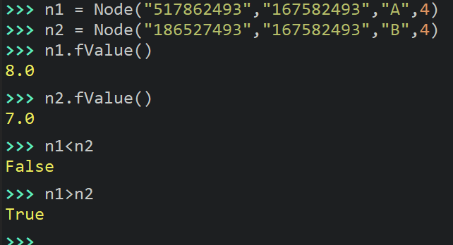 That's it. All of my changes went into the Node class. Since I changed what numbers were used to sort the Priority Queue by changing the magic methods, the code for the Uniform Cost search worked as is.
