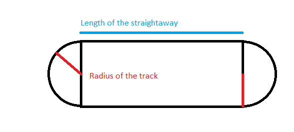 - Think about the dimensions of a track. A perfect racing "oval" is actually a rectangle closed in by two perfect semi-circles on each end: