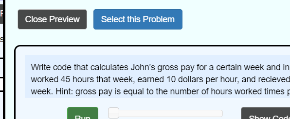 You have encountered Parsons Problems in your textbook, such as Activity 2.10.6 on Runestone Academy. These problems present the complete code for a program, but in a mixed-up order, sometimes including extra, distracting code. Your task is to arrange the pieces correctly to "write" the described program. These problems are a great first step in learning because they allow you to focus on the semantics of programming rather than the syntax.
