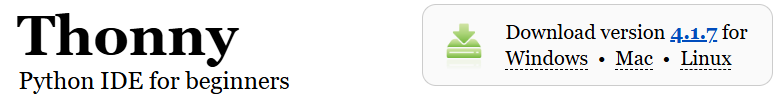 Thonny is a standalone Integrated Development Environment (aka an IDE) that makes learning python a bit easier. We will frequently use Thonny in class. Thonny will not work on Chrome-books. If that is your only computer, please talk to me about what to use instead.
