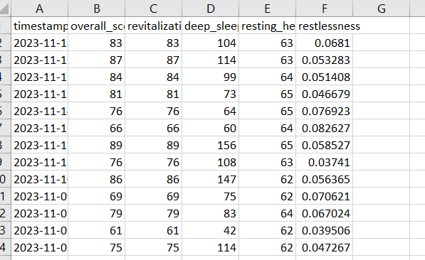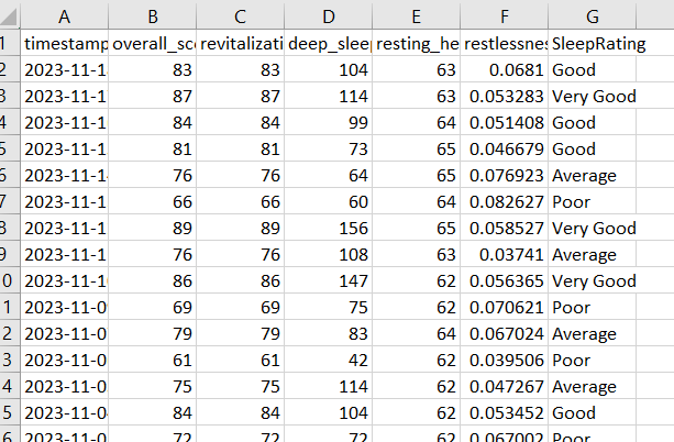 - For each night's sleep consider the night's overall score and add a column about the quality of that night's sleep based on: