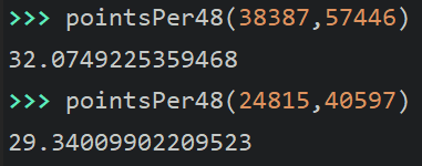 - There is a new column at the end containing the information calculated by the pointsPer48() function from Task One for that player. [Exactly task three]