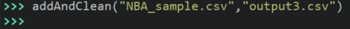 In Task Three I asked you to add some data to our file. But it added data for every player in our file. Suppose I want to focus in on the players who played the equivalent of a full NBA season (82 games). In this last function, I encourage you to copy and paste your code from addColumn() but rename it to be addAndClean(). Then modify the code so that it only writes out the information for players with 82 or more games to the final output file.